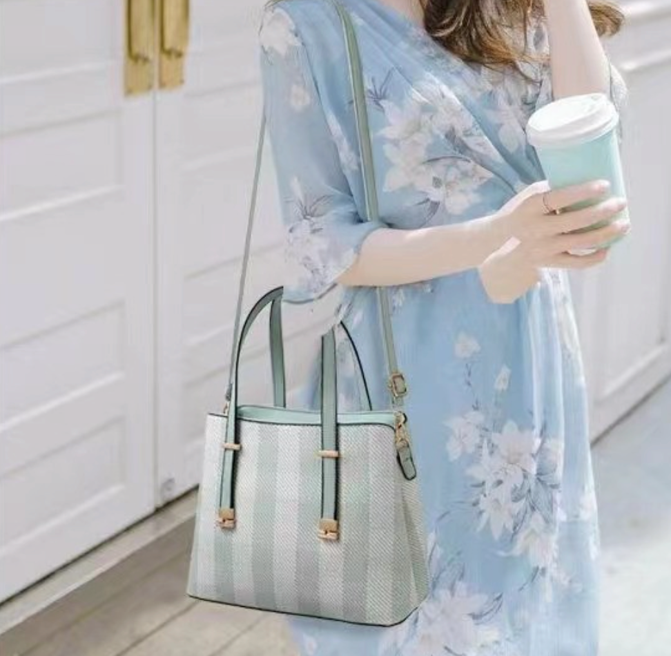 GESSY CHECKERED HANDBAG TOTE BAG IN BLACK