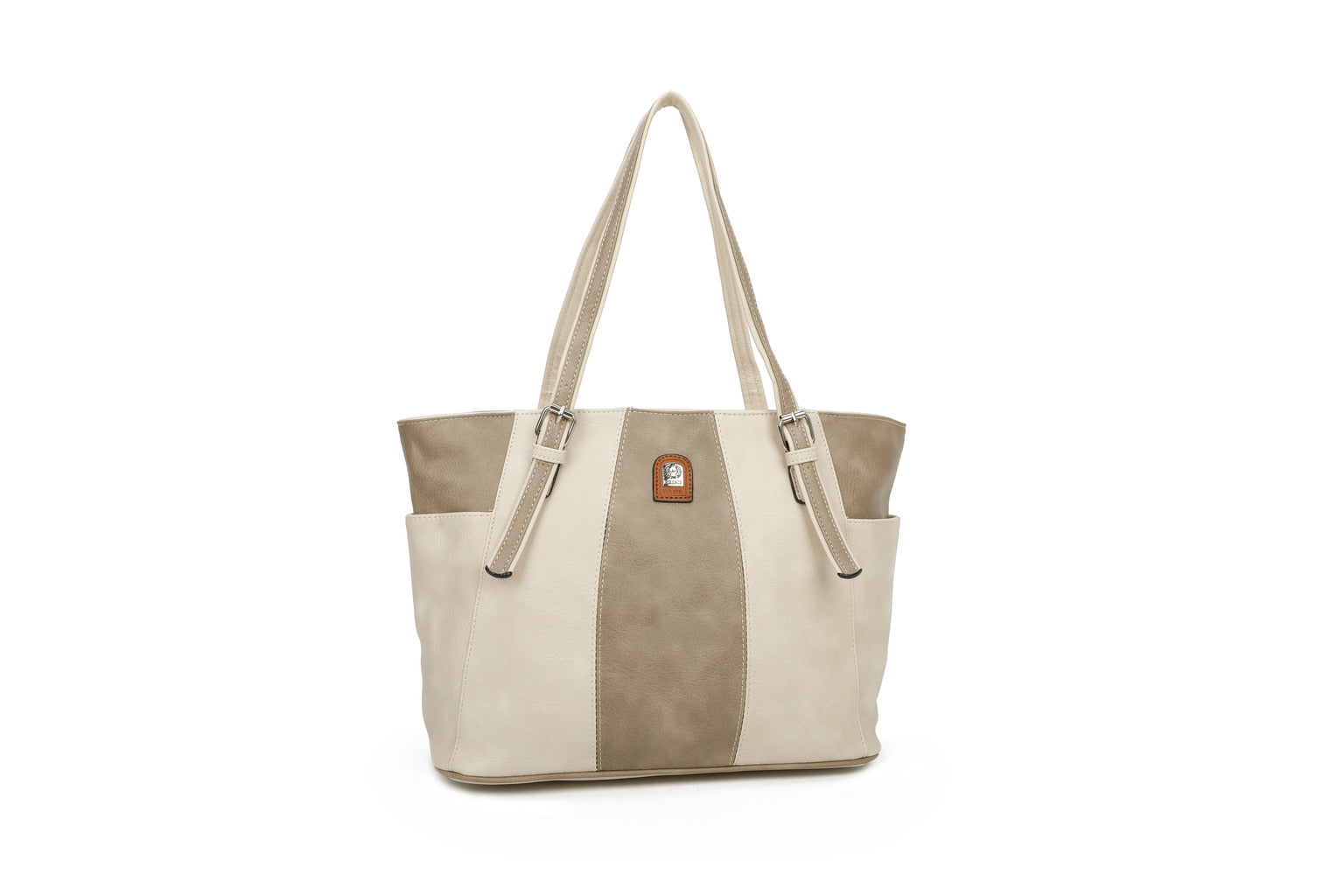 GESSY LARGE CAPACITY COLORBLOCK HANDBAG IN BEIGE