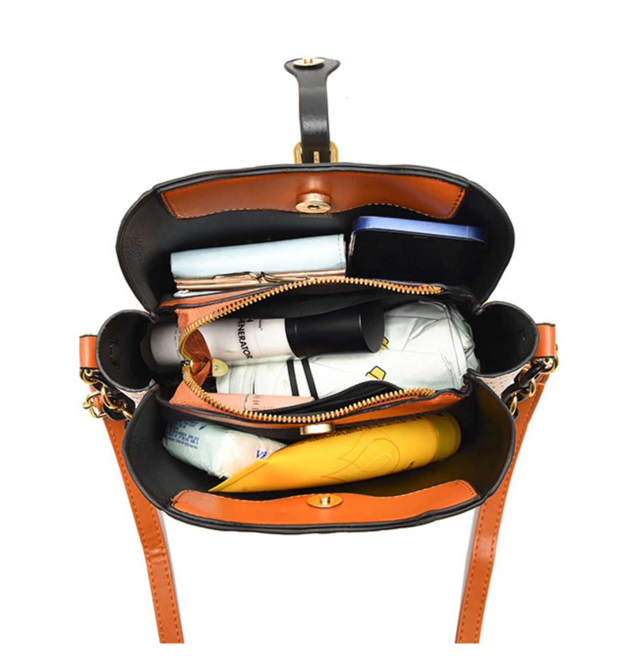 GESSY LEATHER PRINT HANDBAG IN BLACK