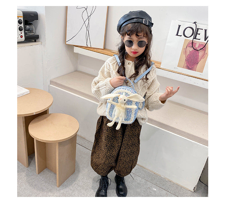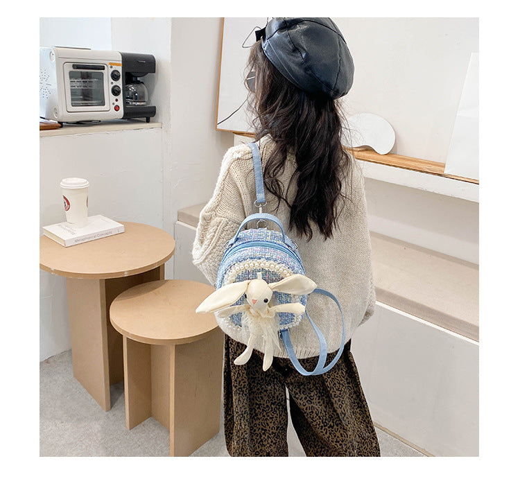 GESSY CUTE LITTLE BUNNY RABBIT DOLL PEARL-ENCRUSTED BACKPACK