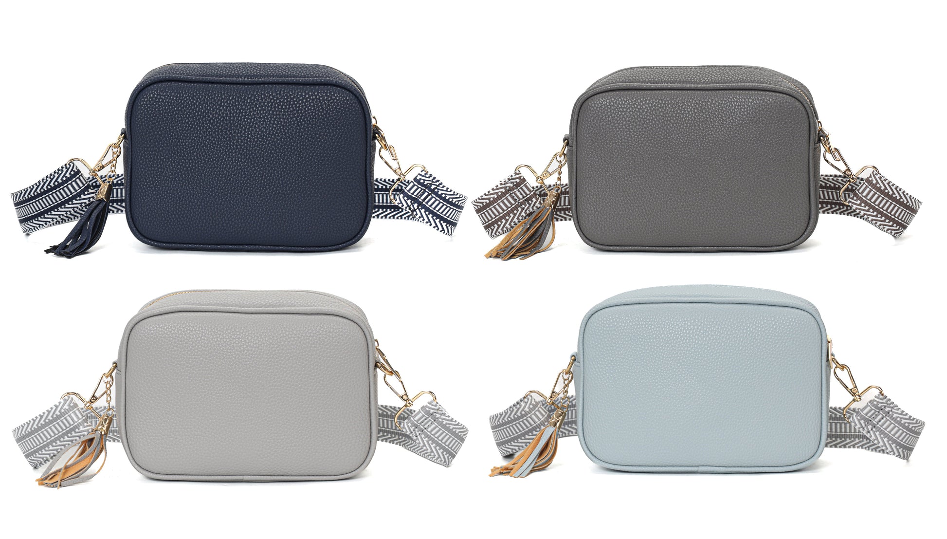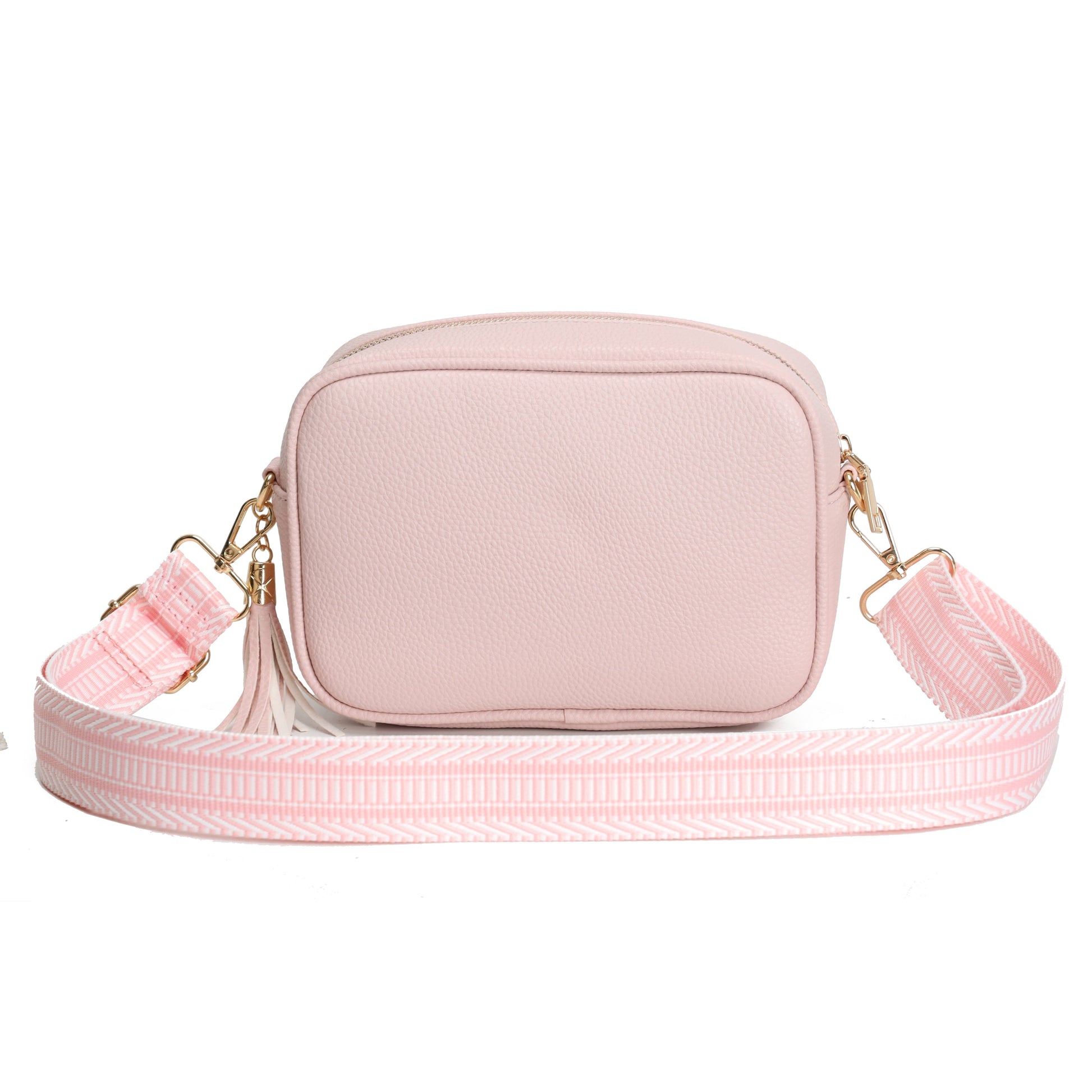 GESSY CAMERA TASSEL CLUTCH BAG WITH OPTIONAL PATTERNED SHOULDER STRAP
