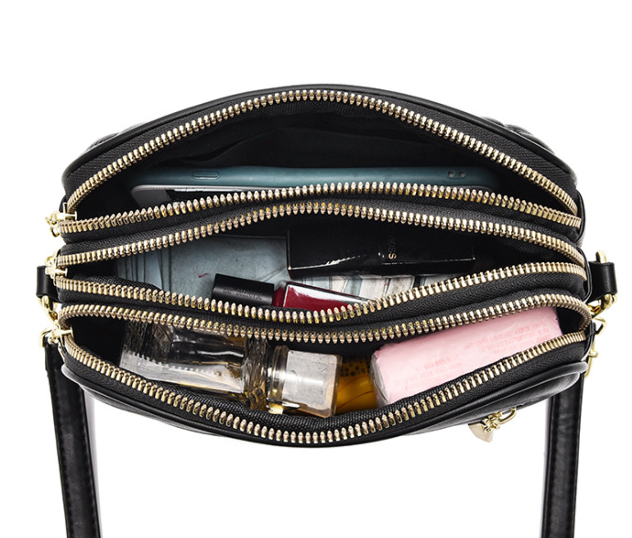 GESSY QUILTED DIAMOND SHAPE CROSSBODY BAG IN BLACK