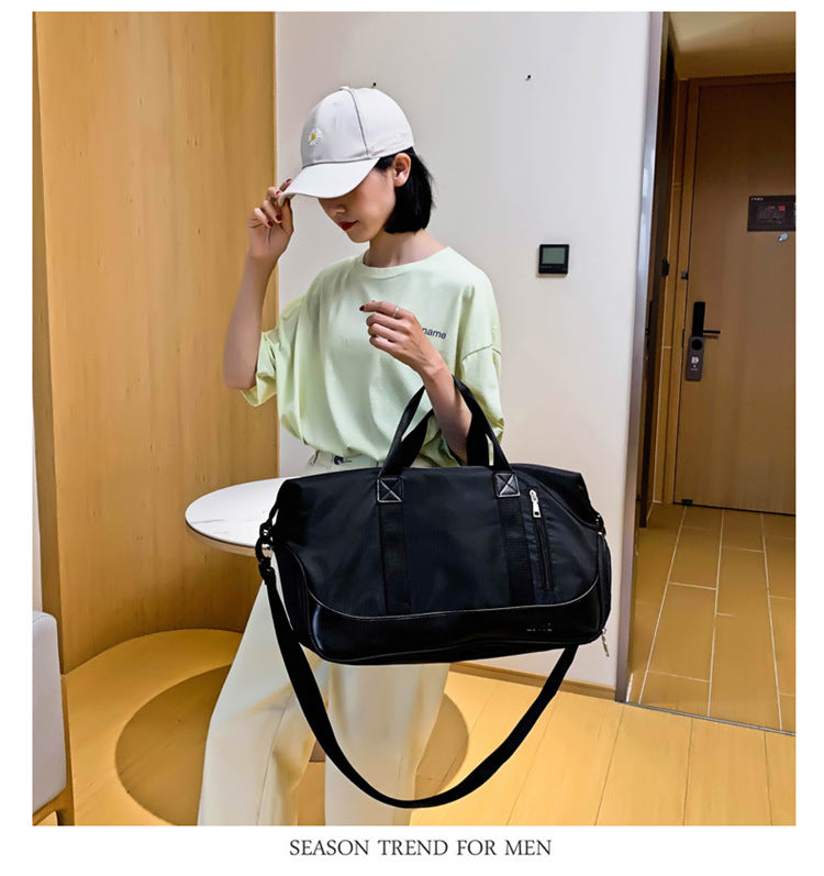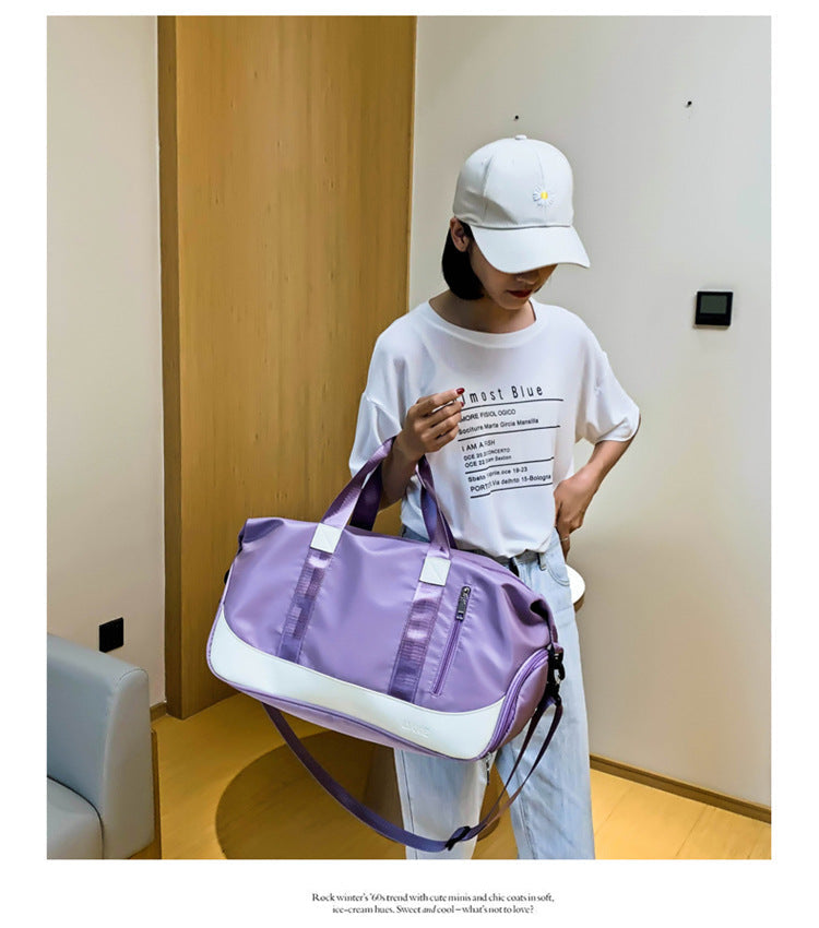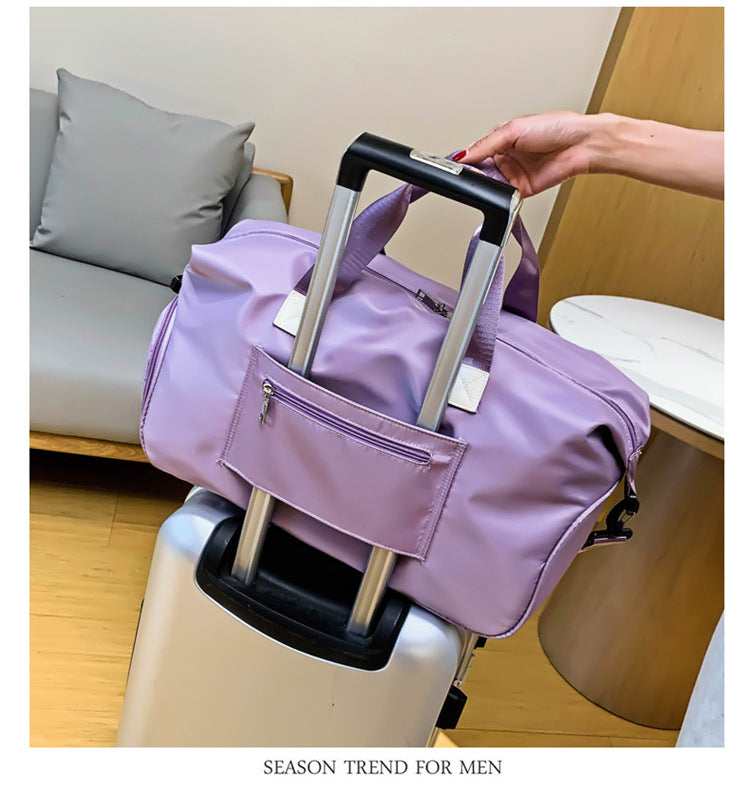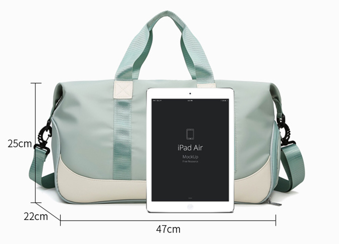 BED325 GESSY TRAVEL/GYM BAG/WEEKEND BAG. It has a strap on the back that can be attached to hand luggage handle and sit on top of hand luggage and it also comes with a separate compartment for shoes.