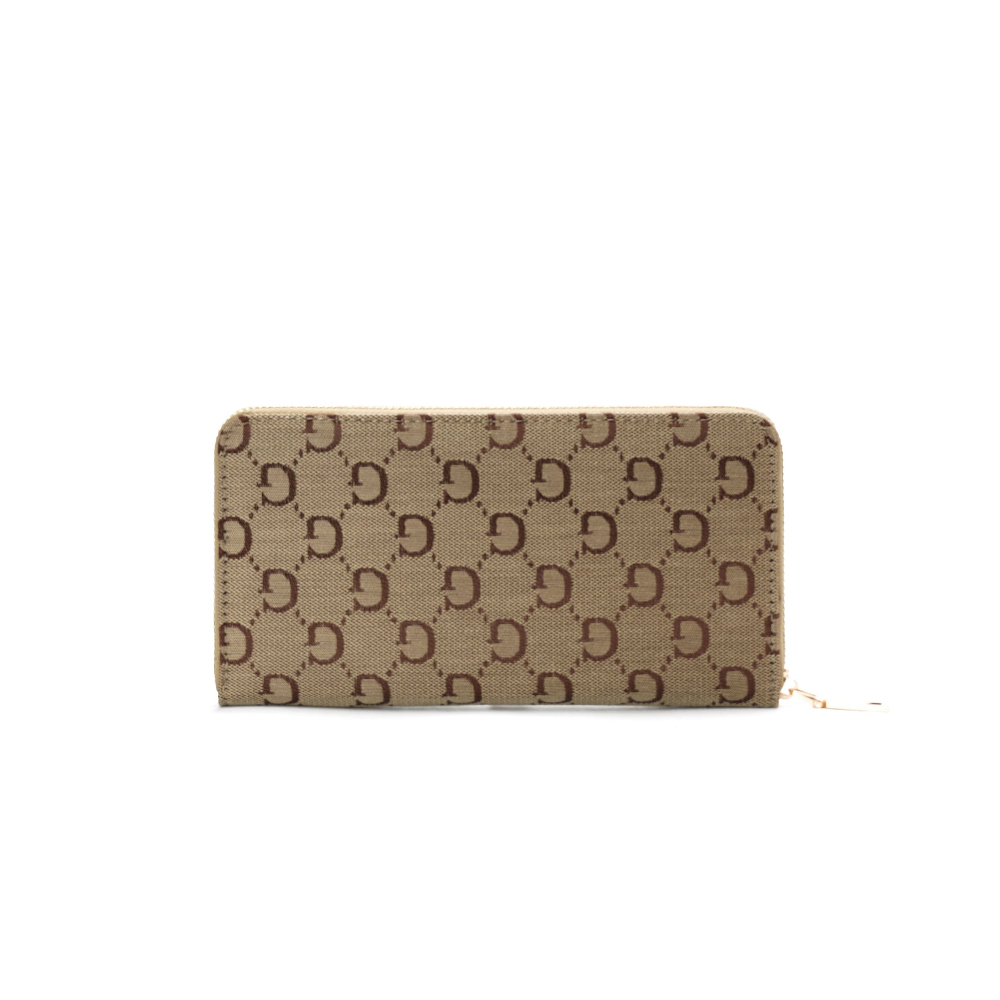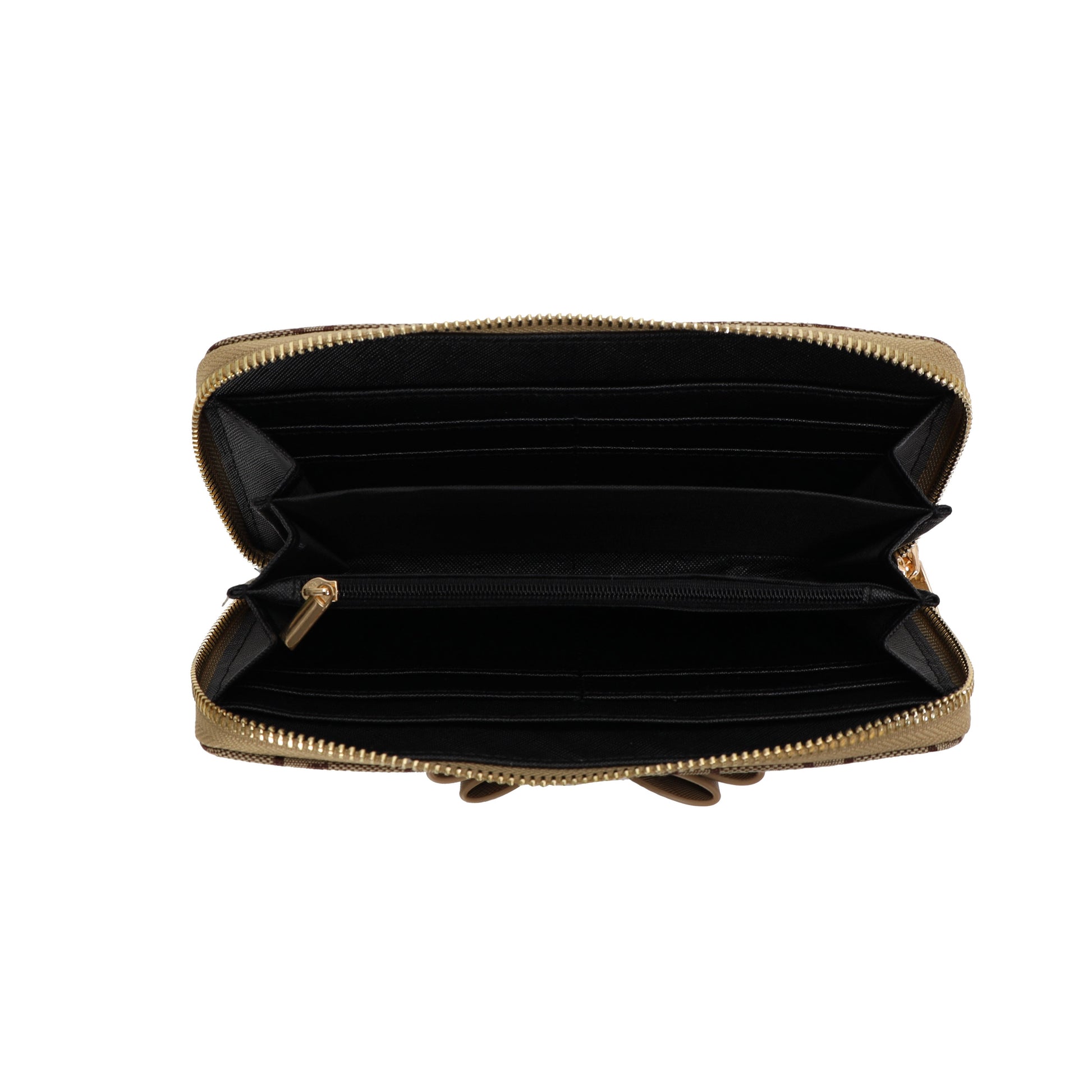 GESSY LOGO PRINT LONG PURSE WITH BOW TIE IN BROWN