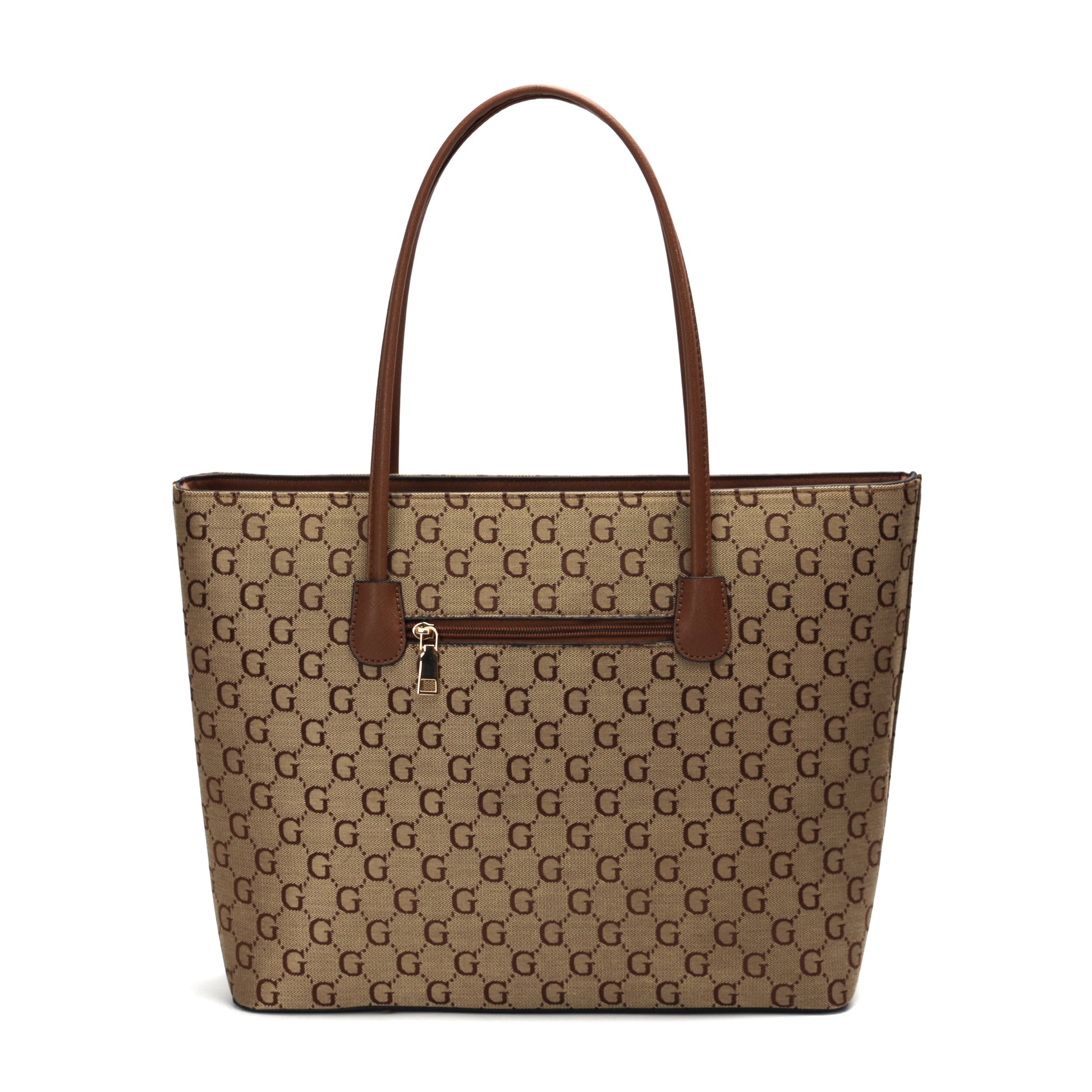 GESSY BOW DETAIL LOGO PRINT HANDBAG SET IN BROWN