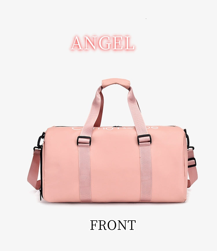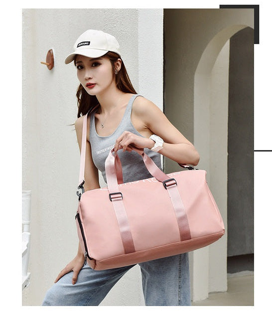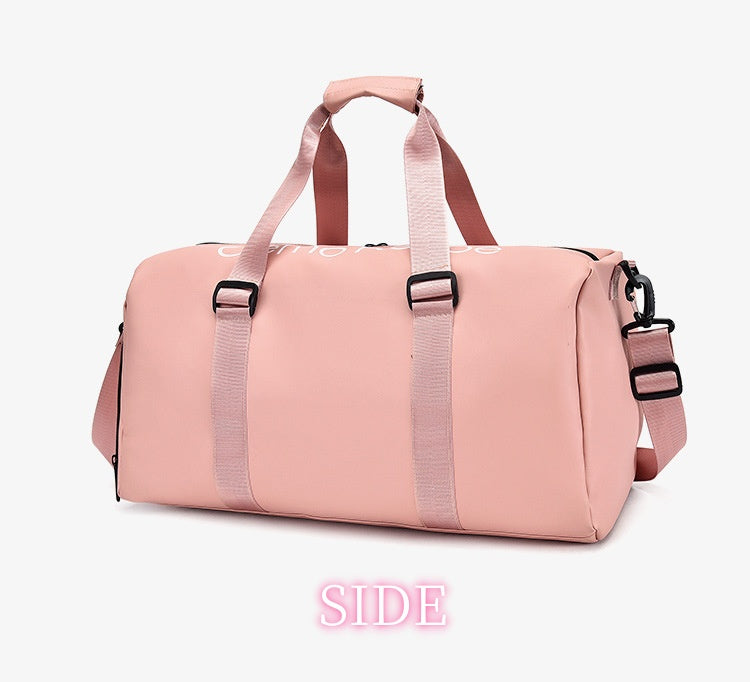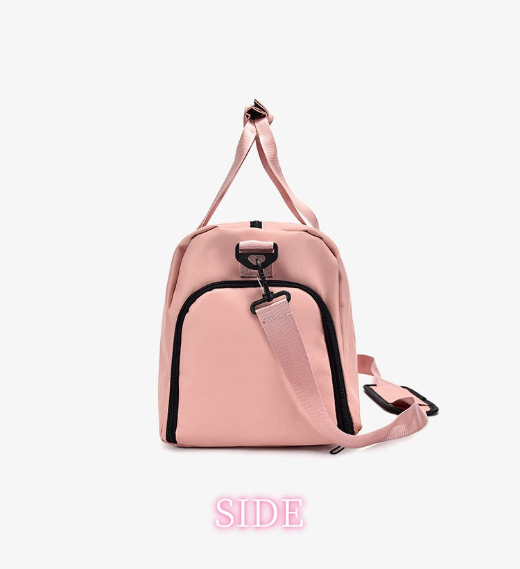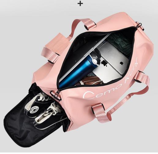 HT4825 GESSY Travel Bag/Gym Bag. It has a strap on the back that can be attached to hand luggage handle and sit on top of hand luggage and it also comes with a separate compartment for shoes.