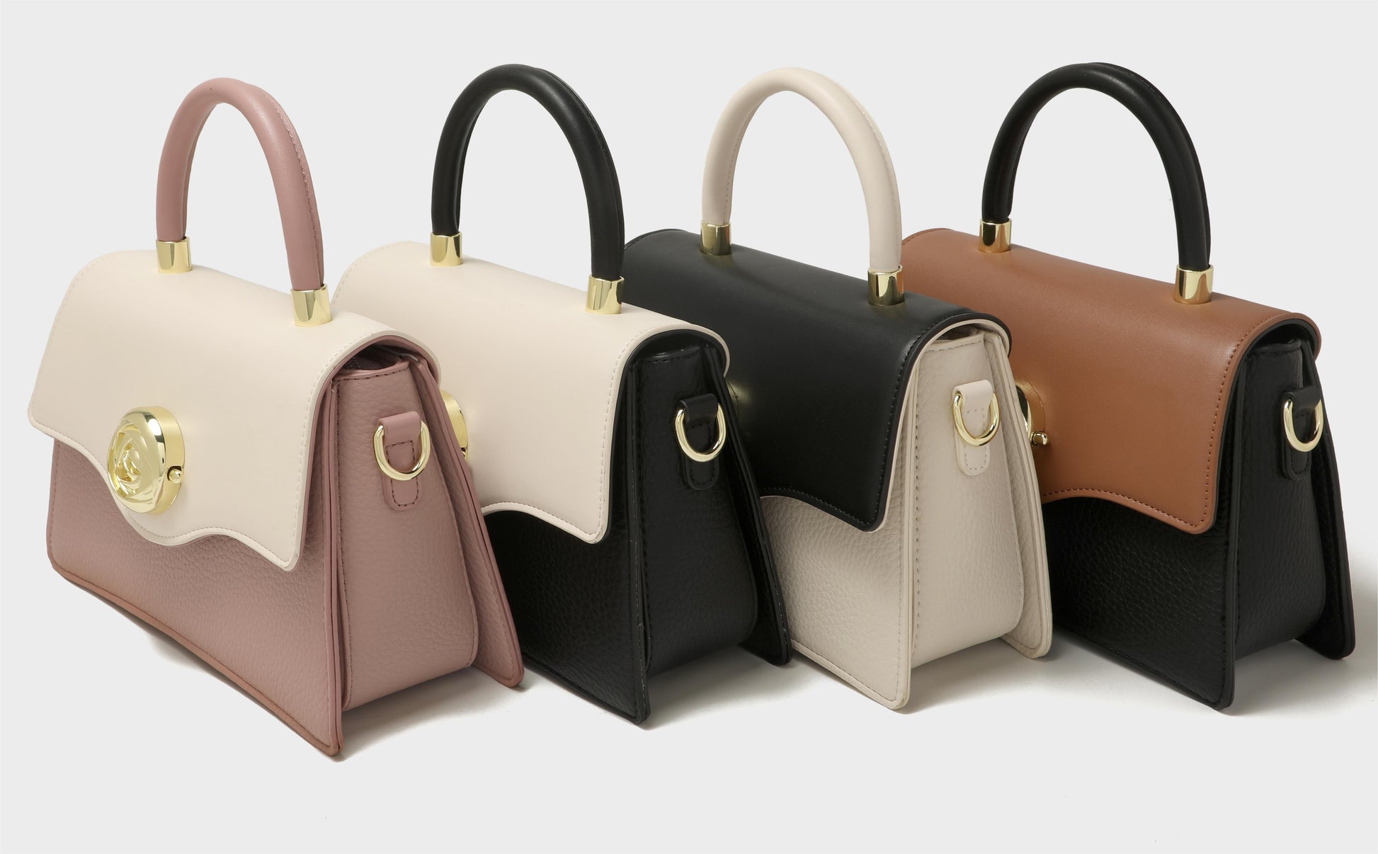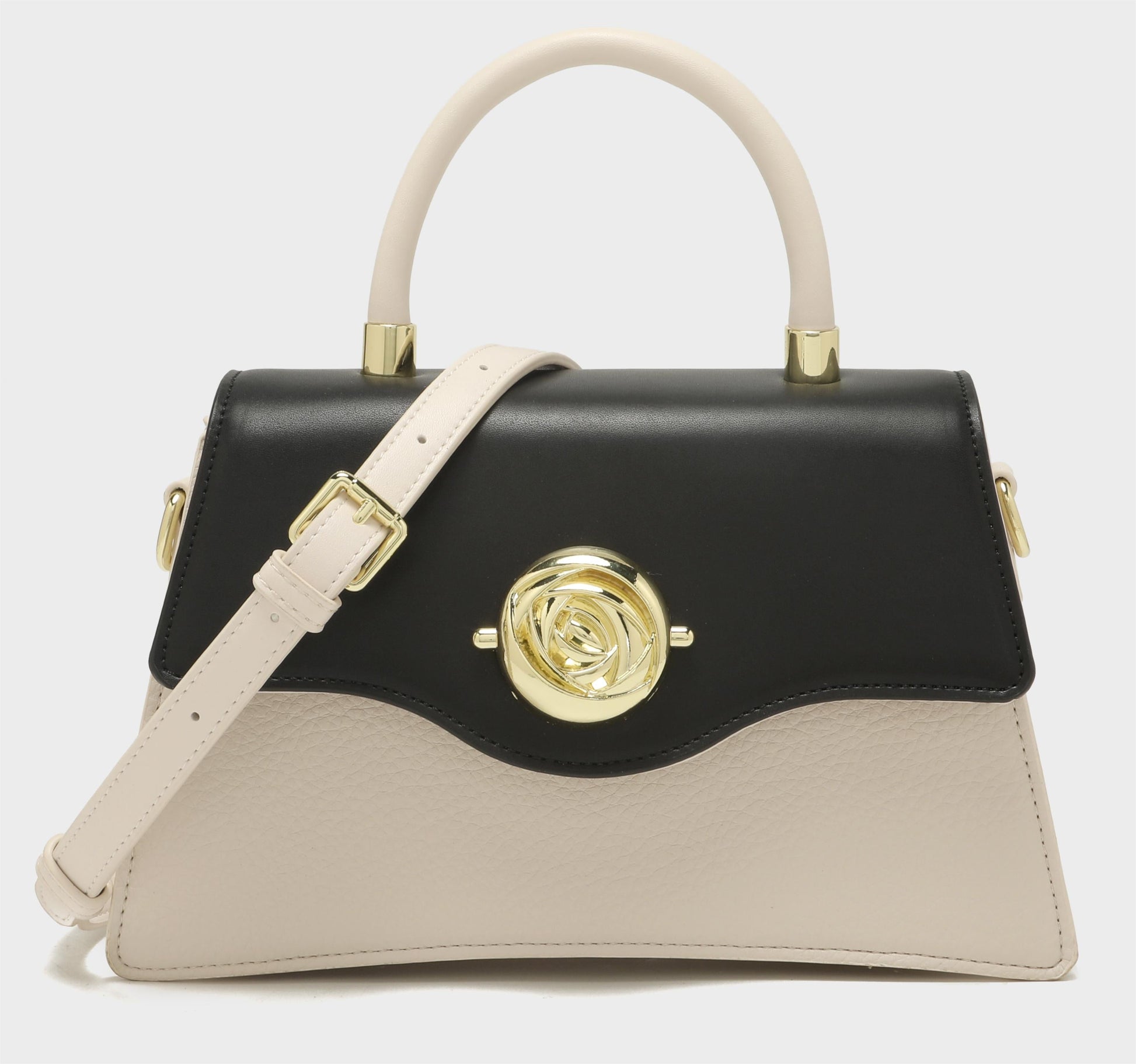 GESSY COLORBLOCK TOP HANDEL FLOWER BUTTON FLAP HANDBAG