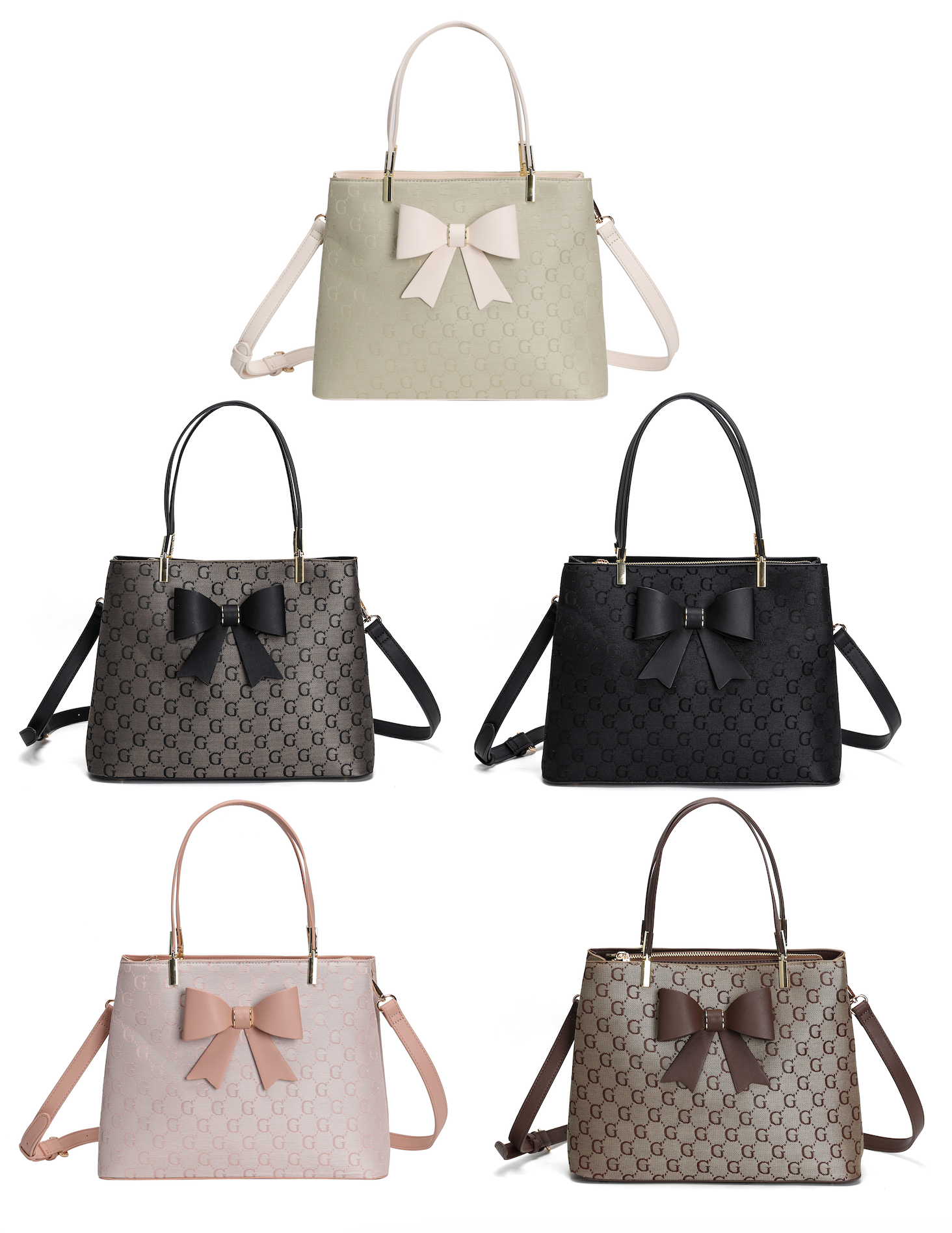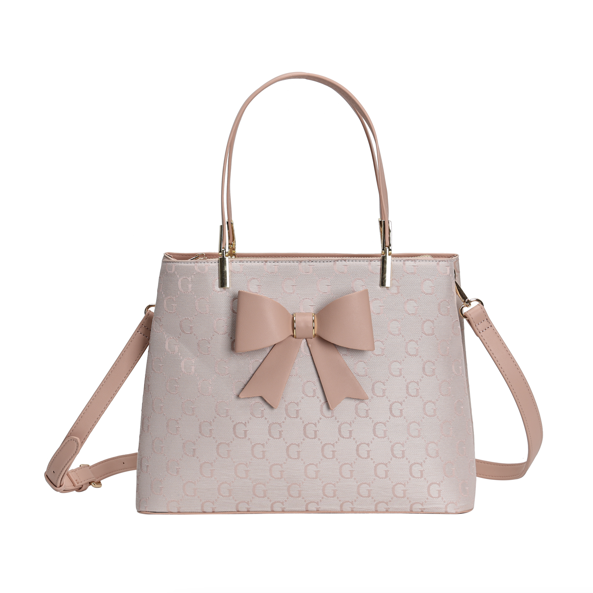 LYDC BOW DETAIL LETTER PRINT TOTE HANDBAG IN PINK